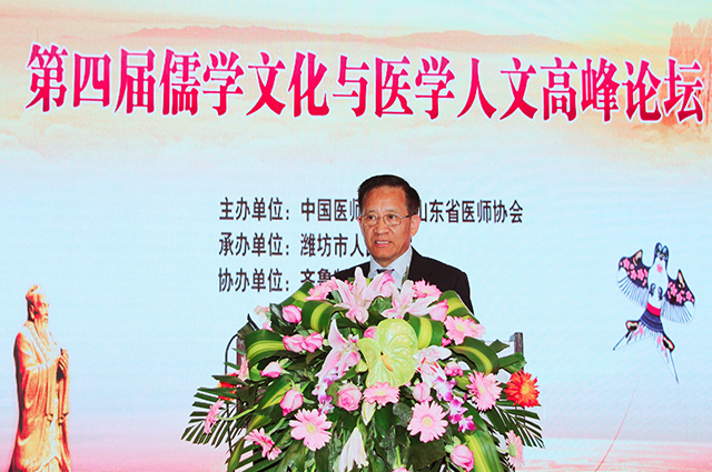 2019年5月15日,由中国医师协会、山东省医师协会主办、齐鲁制药有限公司协办、潍坊市人民医院承办的“第四届儒学文化与医学人文高峰论坛”在风筝之都潍坊举行。全国各省(市)医师协会领导及相关负责人,中国医师协会部分专科医师分会代表,山东省医师协会人文医学分会及其他各专科医师分会、专业委员会代表,中国医师协会领导和全体工作人员以及新闻界的朋友等共400余人参加了此次论坛。