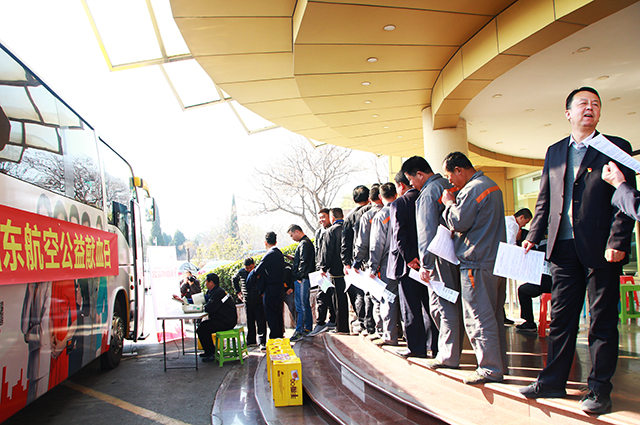 山东航空集团与路劲地产集团携手山东省血液中心开展“路劲地产·山东航空公益献血日”活动,为山东省血液中心血液存储奉献一份力量。