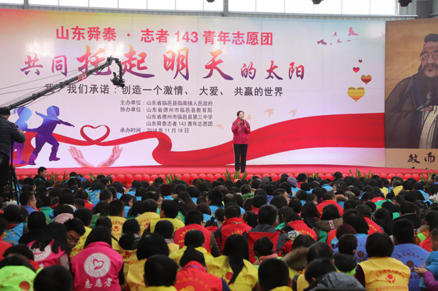 2018年11月18日,“共同托起明天的太阳”大型公益活动在德州市县夏口村工业园举行。本次活动由“共同托起明天的太阳”皇冠143青年志愿团承办,来自省内的学生、困境孩子、教师、家长和爱心志愿者近千人参加。
