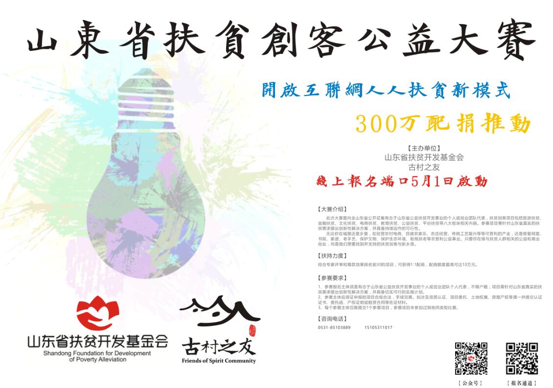 提升扶贫成果 建立长效机制 山东省首届扶贫创客公益大赛火热报名中