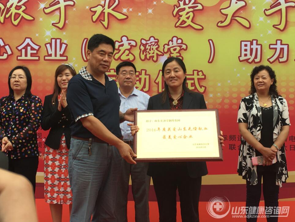 2016年6月3日,由山东省献血办公室、山东省血液中心、齐鲁工业大学主办,公益中国·山东分会、中国网、山东健康咨询网承办的“传播无偿献血新风 寻找最美爱心企业”宏济堂助力无偿献血公益活动启动仪式在齐鲁工业大学举行。