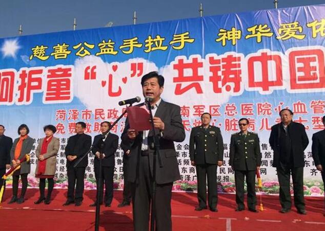 菏泽市政府副市长刘传谨在活动现场做了重要讲话,对此次大型公益活动给予了高度评价,并要求政府工作人员心系百姓,真心实意地同百姓交朋友,与百姓同呼吸、共命运、心连心,时刻把百姓的冷暖疾苦挂在心上。同时,加大对先天性心脏病儿童的救助工作,让更多的患儿脱离病痛,回归家庭,点燃对生活的希望,切切实实的为老百姓解疾苦,办实事。让困难群众得到更多实惠,共享改革发展成果。