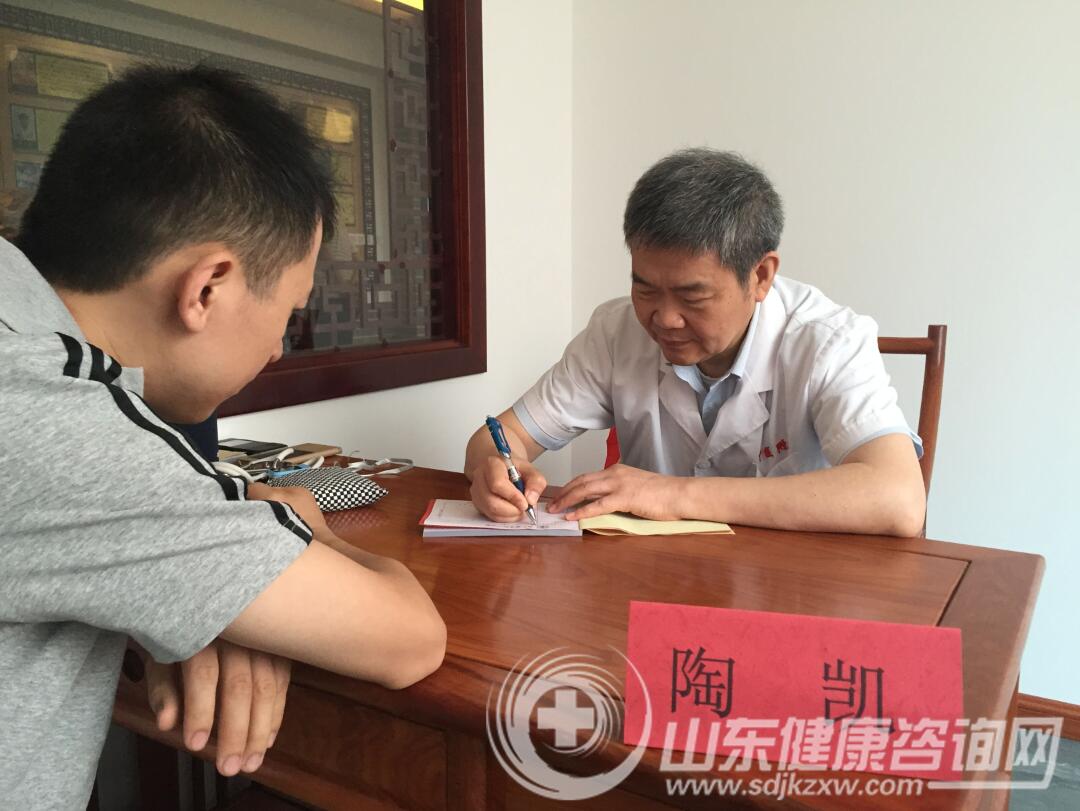 (山东省中医院肺病科主任陶凯教授为患者诊病)