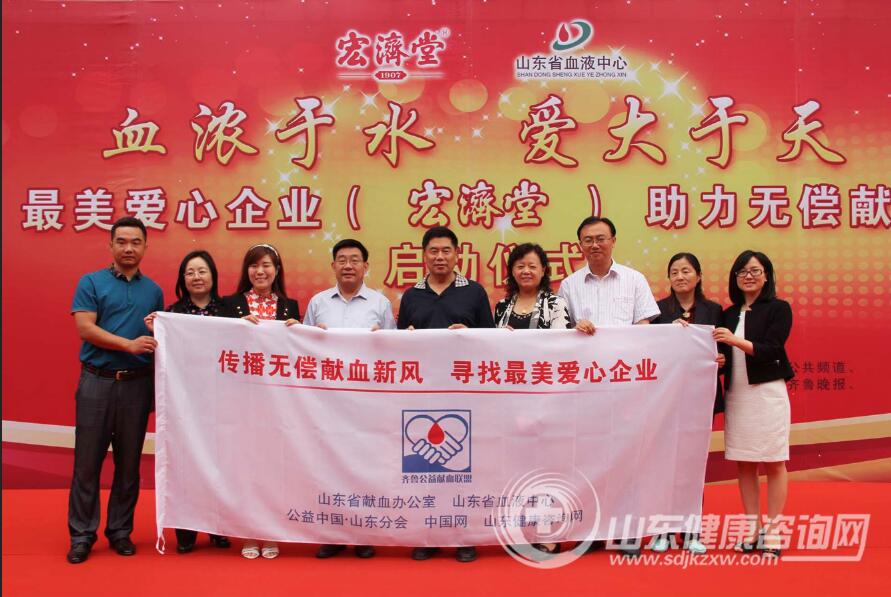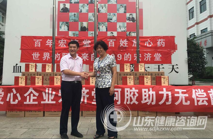无偿献血,点亮生命!2016年8月3日,山东宏济堂制药集团济南阿胶制品有限公司 助力无偿献血捐赠仪式在省血液中心举行。省血液中心副主任刘金玲、献血办主任李蓬、山东健康咨询网总监 公益中国慈善联盟.山东分会秘书长晁玉萍、宏济堂阿胶集团品牌文化负责人 陈子昂等领导出席启动仪式。