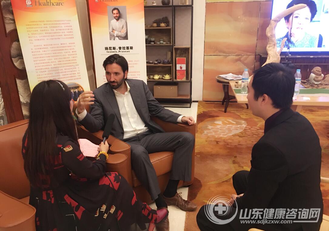 (加拿大KalliDerm公司CEO扬尼斯•普拉塞斯博士接受记者采访)