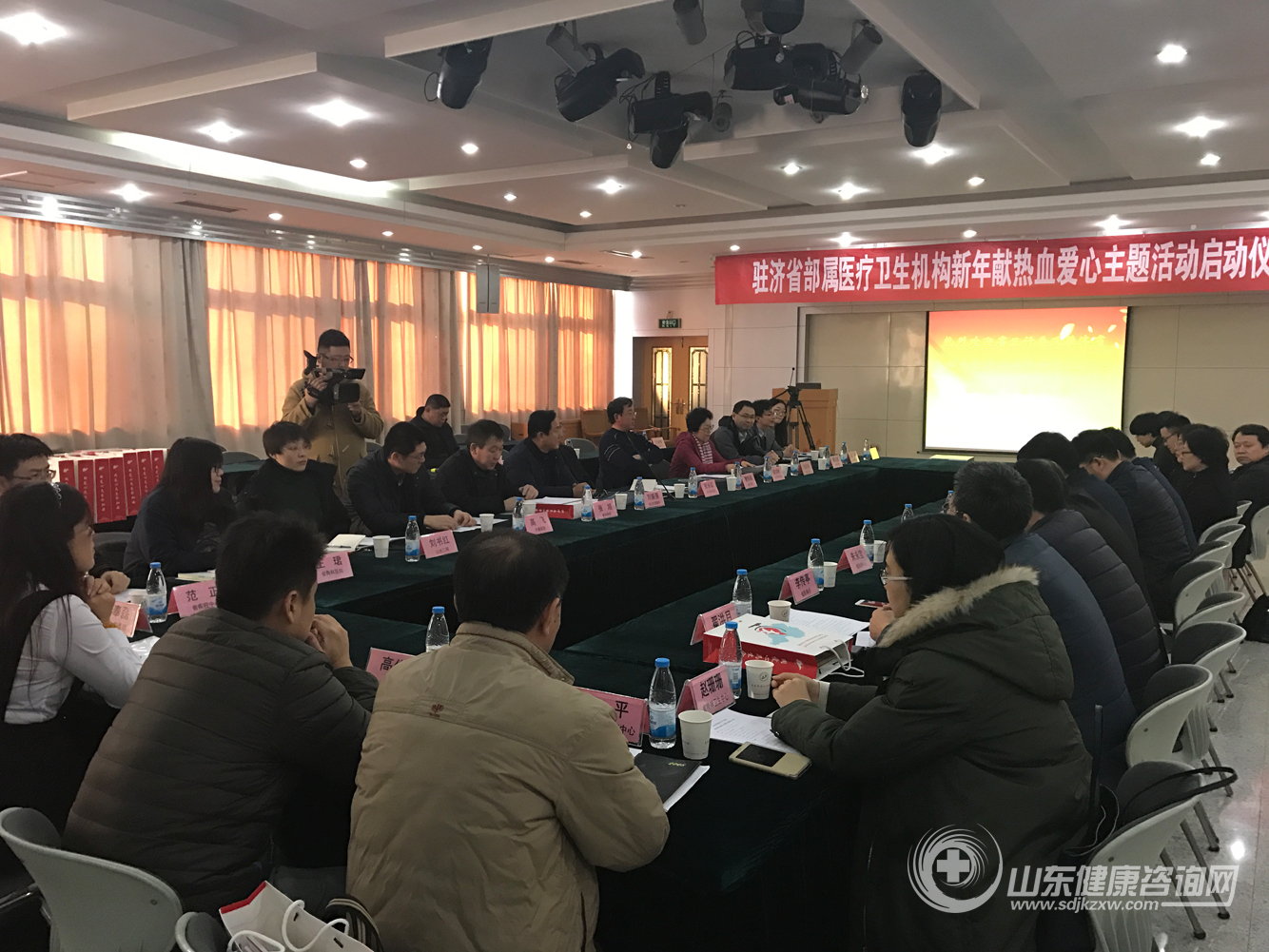 2017年1月11日, 驻济省部属医疗卫生机构新年献热血爱心主题活动启动仪式在省血液中心举行。省卫计委医政医管处副处长战涛,省血液中心主任秦敬民、党委书记王磊光、副主任朱永宝、纪委书记李蓬,以及22家驻济医疗卫生单位负责无偿献血工作的领导参加了启动仪式。