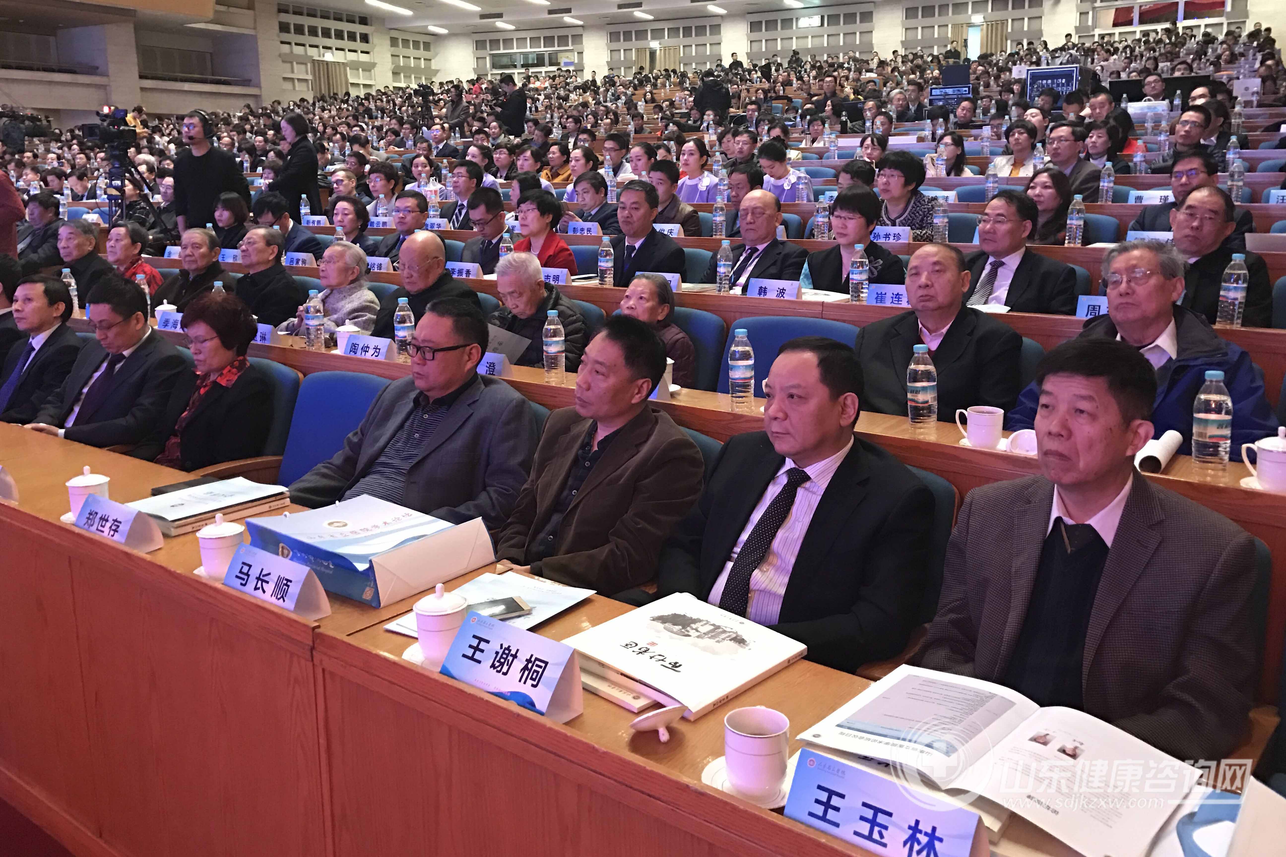 中国科学院院士、北京大学教授、国际知名疼痛学家韩济生,中国工程院院士、南京医科大学教授、南京医科大学第一附属医院肝脏外科研究所所长王学浩,澳大利亚皇家外科医师学会会员、查尔斯王子医院心胸外科高级专家康栋,山东大学文学院博士生导师、古代文学专业学科带头人、《百家讲坛》知名讲者马瑞芳,中美合作汉光国际感染性疾病研究中心技术总监、国际健康及公共卫生专家、美国Baylor医学院讲座教授马欣,山东大学党委常务副书记李建军,山东省卫生计生委党组书记、主任袭燕,中华医学会、中国医师协会及省医学会、省医师协会各专科分会、专业委员会主任委员,全国知名医院管理专家、杰出院友代表、医院干部职工代表等千余人出席了会议。