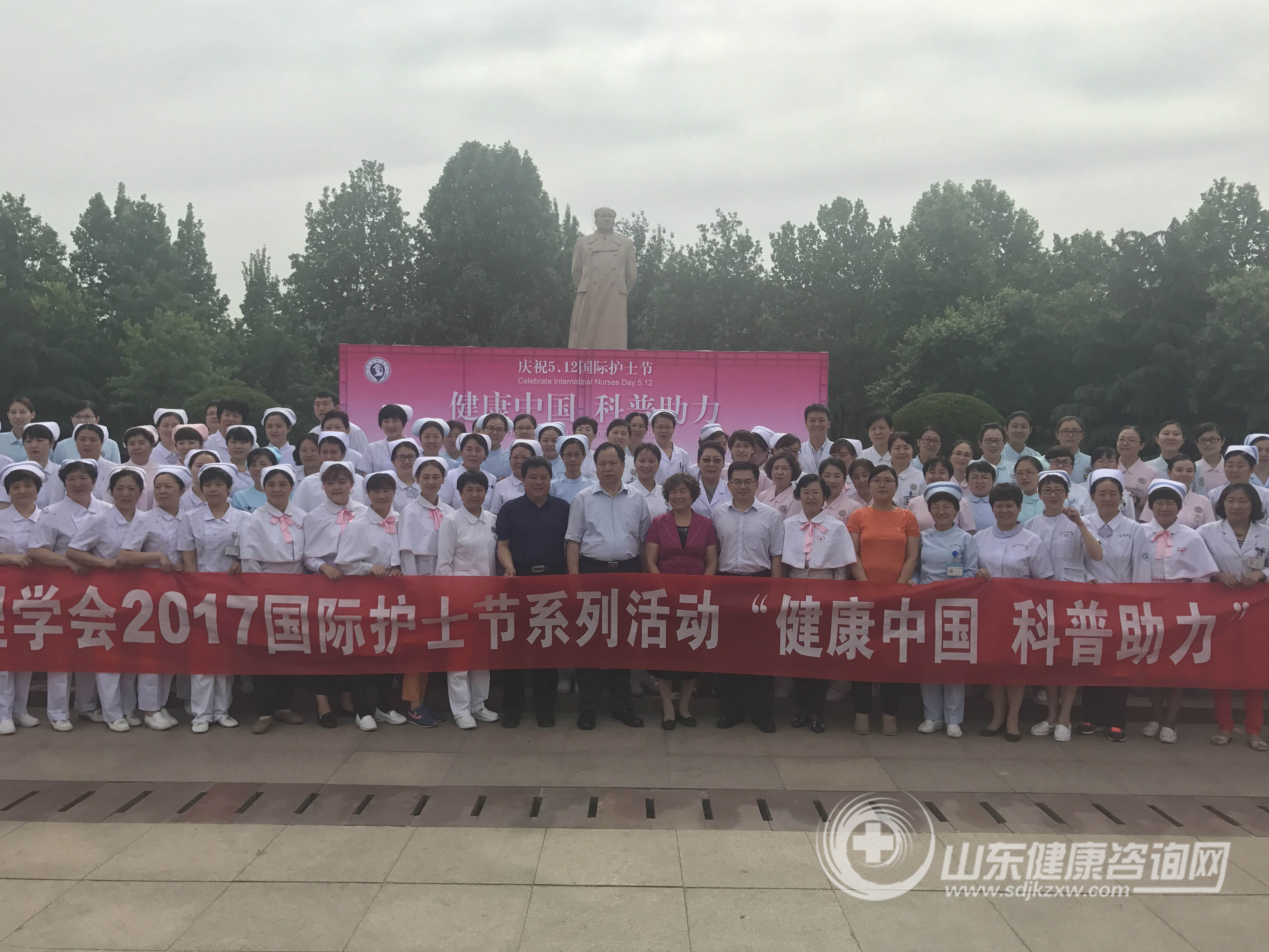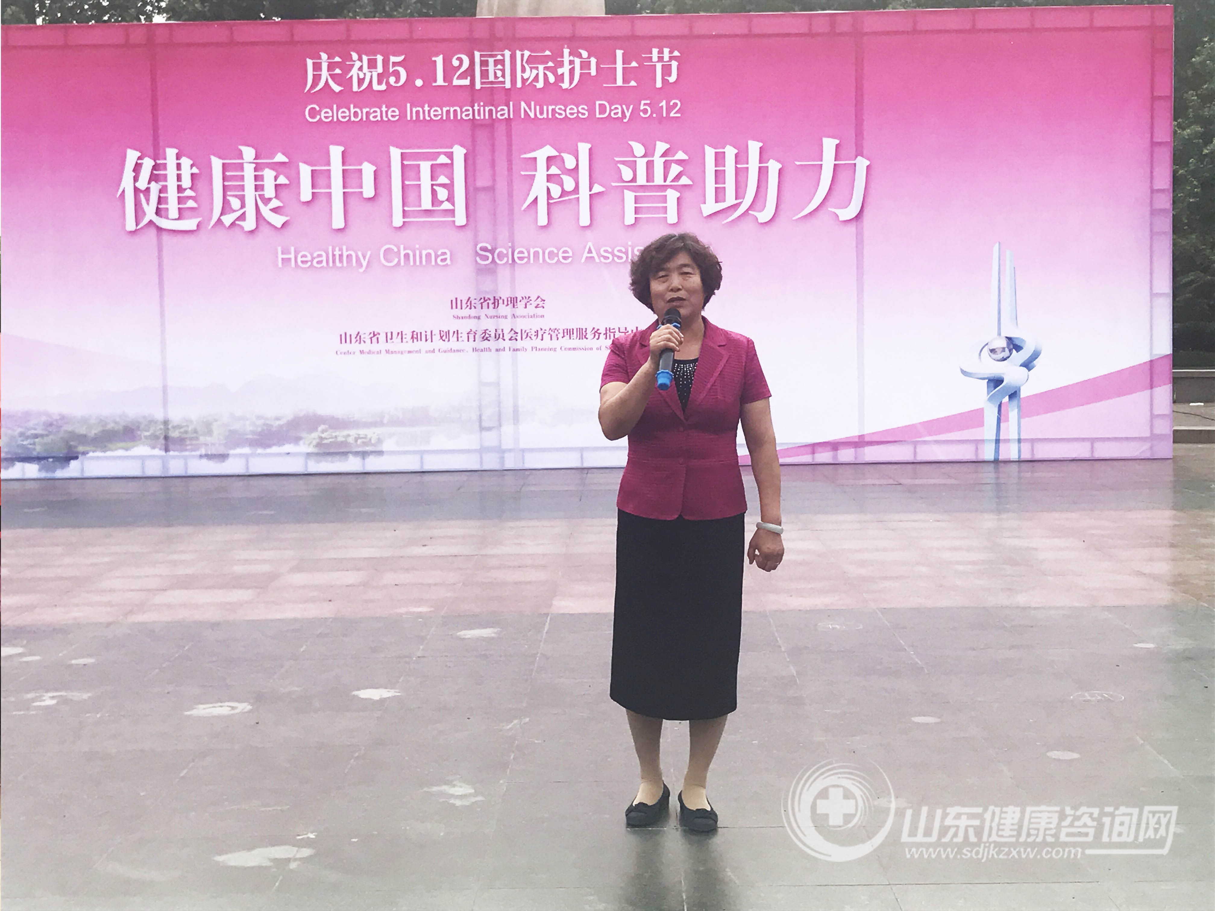 2017年5月11日,为庆祝国际护士节,弘扬南丁格尔精神,展示我省护理人员风采,按照中华护理学会第26届理事会第十次常务理事扩大会议精神要求,由山东省护理学会、山东省卫生和计划生育委员会医疗管理服务指导中心主办、10个驻济医疗机构协办的以“健康中国 科普助力”为主题的国际护士节义诊活动在济南赤霞广场举办。山东省科学技术协会于洪文副主席、山东省科学技术协会办公室邵新贵主任、山东省护理学会刘玉芹理事长、郭明兴秘书长、程琳副秘书长及 160余名医护人员参加了此次活动。
