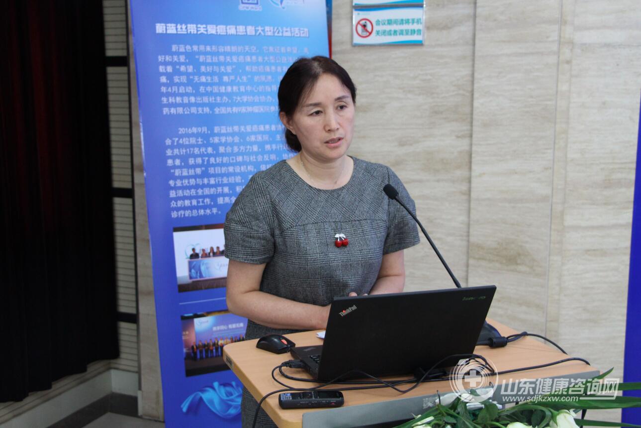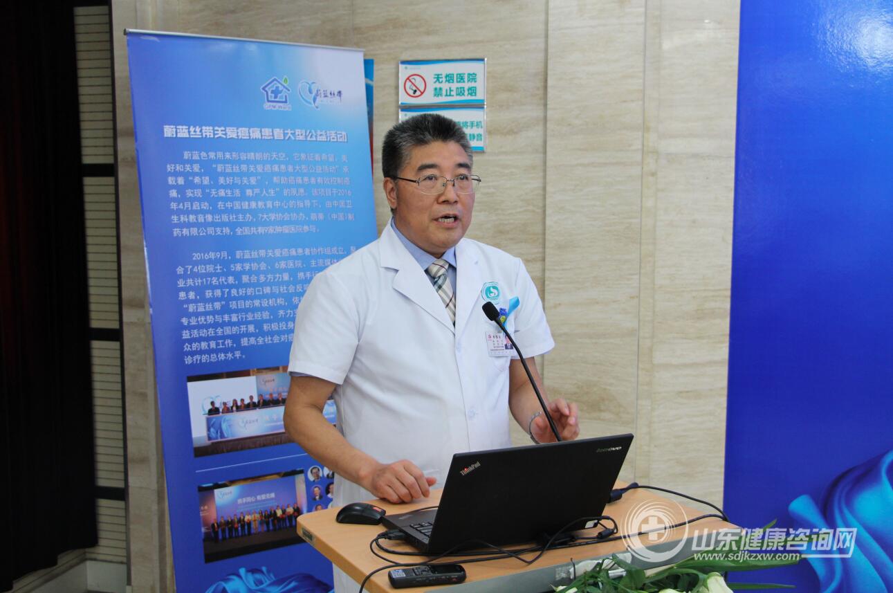中国工程院院士、山东省肿瘤医院院长,蔚蓝丝带关爱癌痛患者协作组组长于金明表示:“疼痛是人类的第五大生命体征,消除疼痛既是医生的责任,也是患者的基本人权,作为一名医务工作者,他倡议大家积极参与到‘蔚蓝丝带’大型公益活动中来,通过开展走进‘癌痛规范化治疗示范病房’的活动,可以将癌痛规范化治疗的理念有效地传播给公众,让更多患者获益”。