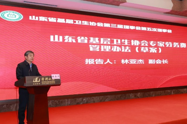 副会长林亚杰同志宣读《山东省基层卫生协会专家劳务费管理办法(草案)》,旨在建立健全学术劳务补偿机制,保障各类学术活动质量。