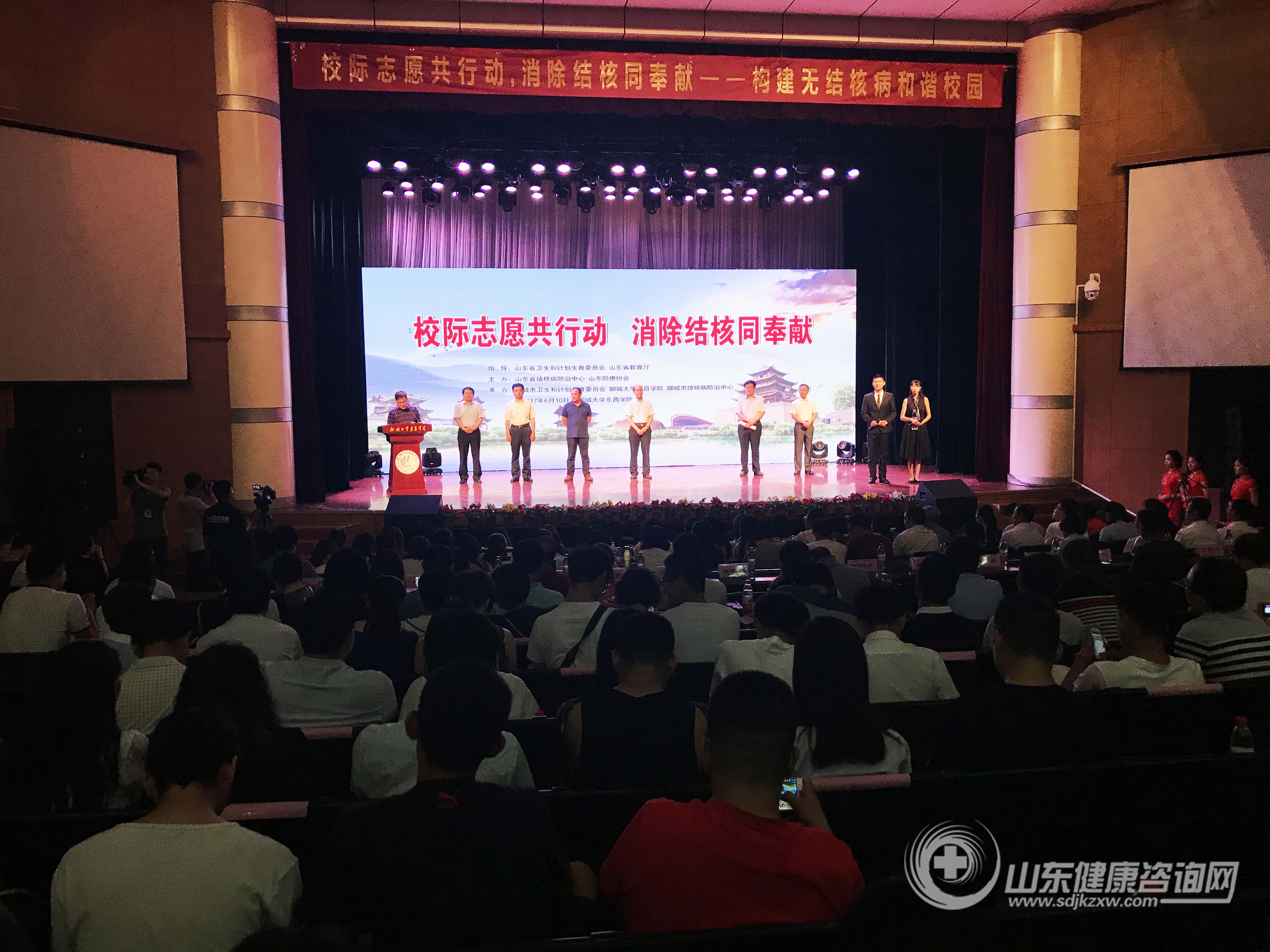 百千万志愿者结核病防治知识传播,构建无结核病和谐校园!2017年6月10日,“校际志愿共行动,消除结核同奉献”活动在聊城大学东昌学院隆重举行。此次活动是在山东省卫生和计划生育委员会、山东省教育厅指导下,由山东省结核病防治中心、山东防痨协会主办,聊城市计划生育委员会、聊城大学东昌学院、聊城市结核病防治中心联合承办的大型校园结核病防治宣传和百千万志愿者结核病防治知识传播活动。