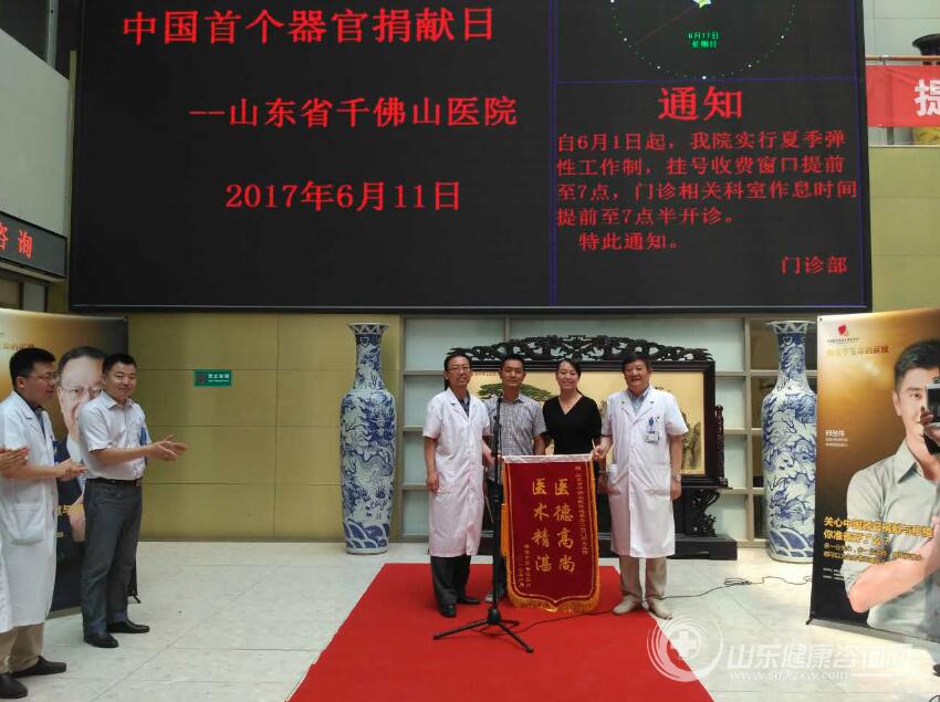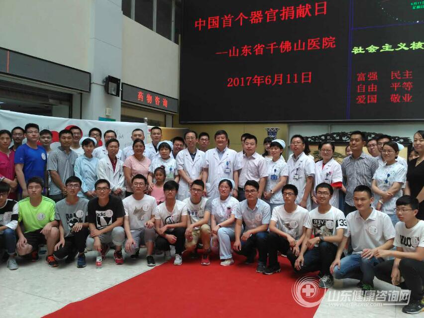 2017年6月11日中国首个器官捐献日山东省千佛山医院举行了隆重的纪念、科普宣传活动,山东省千佛山医院门诊部主任姚振东、宣传部部长毛瑞峰、山东省医学会器官移植专业委员会主任委员,山东省千佛山医院泌尿外科主任兼器官移植中心主任门同义和接受肾脏、肝脏和心脏移植的患者及其家属,器官捐献志愿者、普通群众100余人共同参与了中国首个器官捐献日的宣传纪念活动。