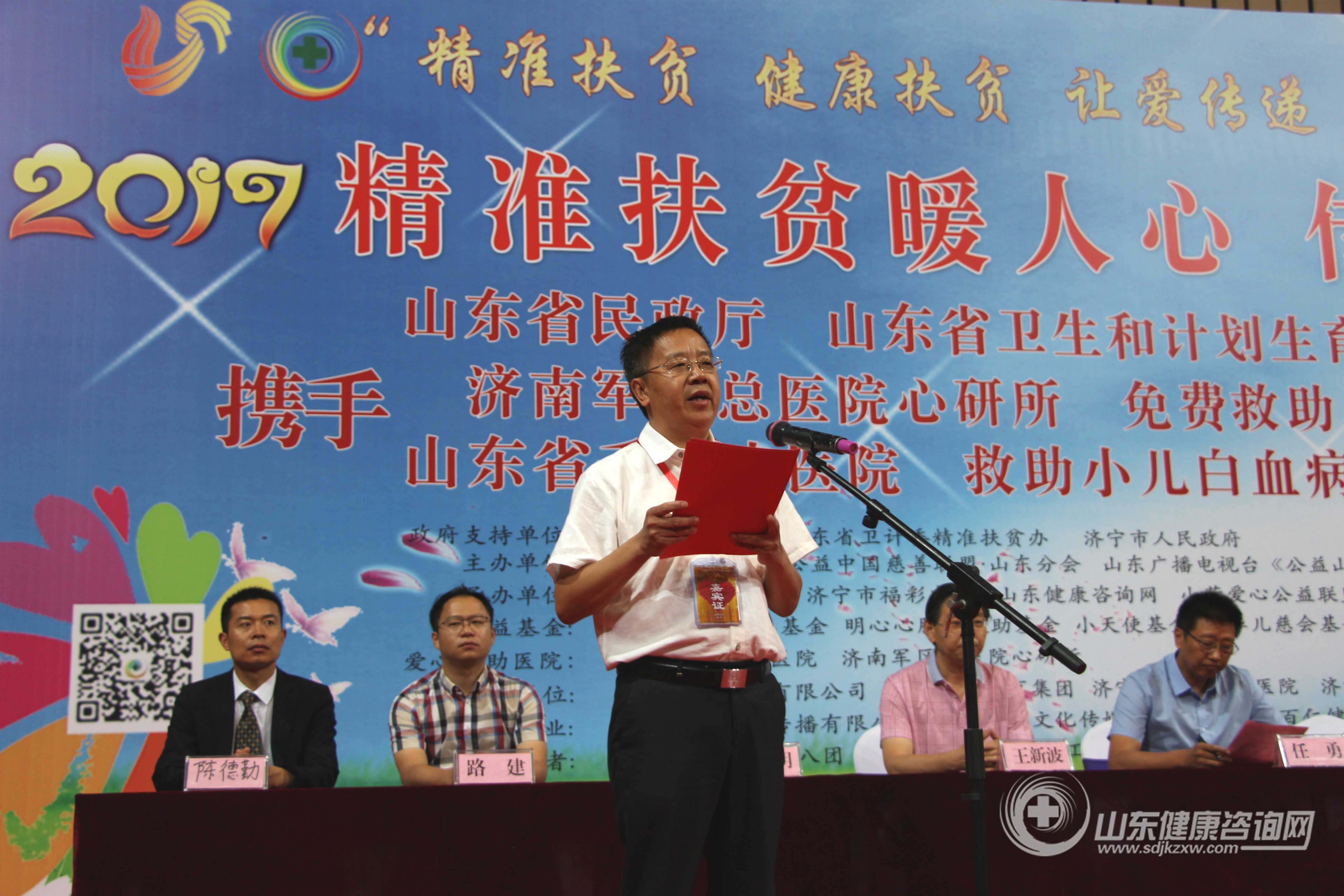本次活动由山东省民政厅、山东省卫计委精准扶贫办、济宁市政府、济宁市民政局、公益中国慈善联盟·山东分会、山东广播电视台《公益山东》、山东健康咨询网携手山东省千佛山医院、济南军区总医院心研所、山东省扶贫开发基金会、山东省慈善总会、山东省红十字会、爱佑基金、神华基金、小天使基金、中华儿慈会基金联合举办。