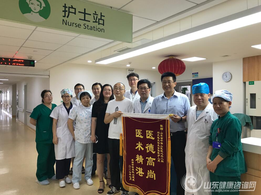 患者刘刚激动的告诉记者,能有幸重获新生,必将这份大爱传递下去,尽自己最大的努力去帮助那些需要帮助的人。在出院之时为感谢心脏移植专家刘天起的医疗团队的精心治疗、辛勤付出,专门为医院专家送上真诚的祝福和感恩锦旗。