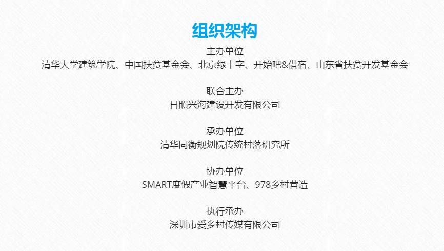 据了解,本次峰会由清华大学建筑学院、中国扶贫基金会、北京绿十字、开始吧&借宿、山东省扶贫开发基金会联合日照兴海建设开发有限公司共同主办,将于9月21-24日在日照市山海天旅游度假区举行。这是继河南新县西河、贵州桐梓县中关村,贵州台江交宫/红阳村后的又一次乡村盛事。