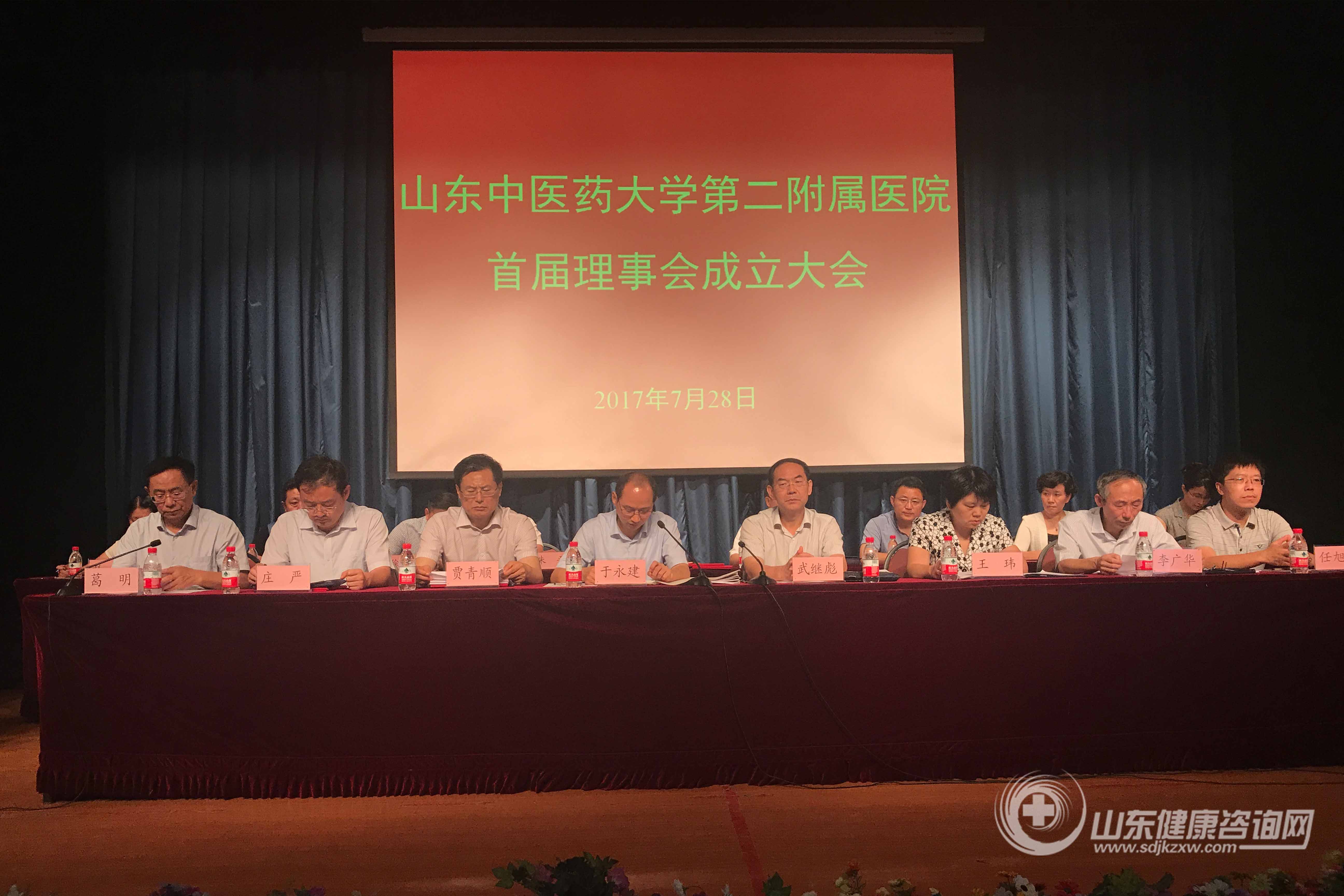2017年7月28日,山东中医药大学第二附属医院首届理事会成立大会在医院文化学术中心召开。山东省事业单位监督管理局副局长于永健,山东中医药大学党委副书记、校长武继彪,首届理事会理事、监事会监事,学校有关部门负责人,医院党委班子全体成员出席大会。医院党委书记、首届理事会理事长葛明主持会议。