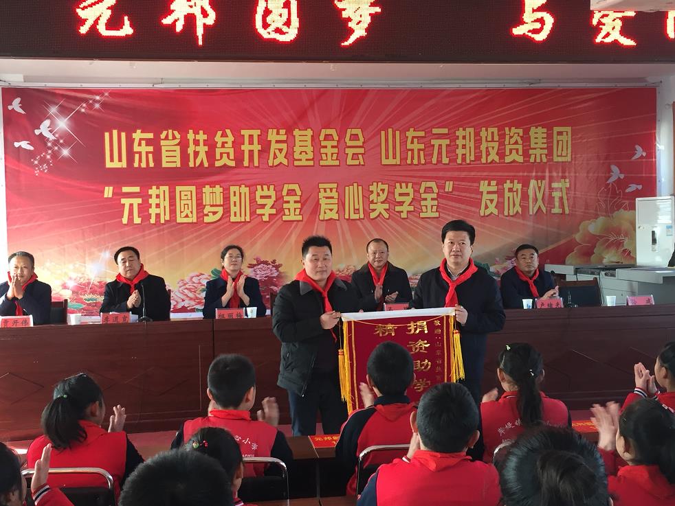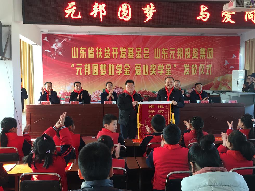 今年8月集团捐资1000万设立山东省扶贫开发基金会“帮基金”公益扶贫专项基金,旨在联合山东省扶贫开发基金会扶贫助学。首期善款用于帮助岸堤镇中心小学改善办学条件、提升办学水平、资助贫困学生、奖励优秀师生。