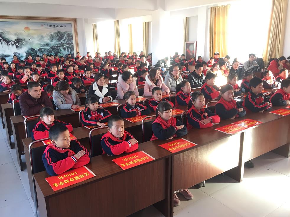 2017年12月19日, 山东省扶贫开发基金会、山东元邦投资集团“元邦圆梦助学金、爱心奖学金”发放仪式在沂南县岸堤镇中心小学举行!