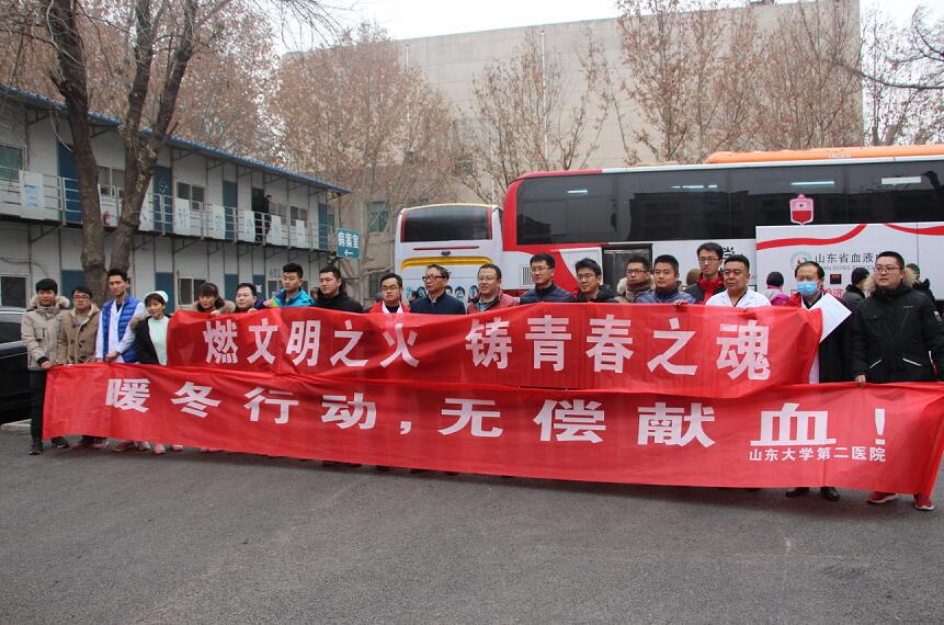 2018年1月16日,山东大学第二医院拉开“暖冬行动 无偿献血”爱心献血活动的序幕,组织医院医务工作者积极参加无偿献血。