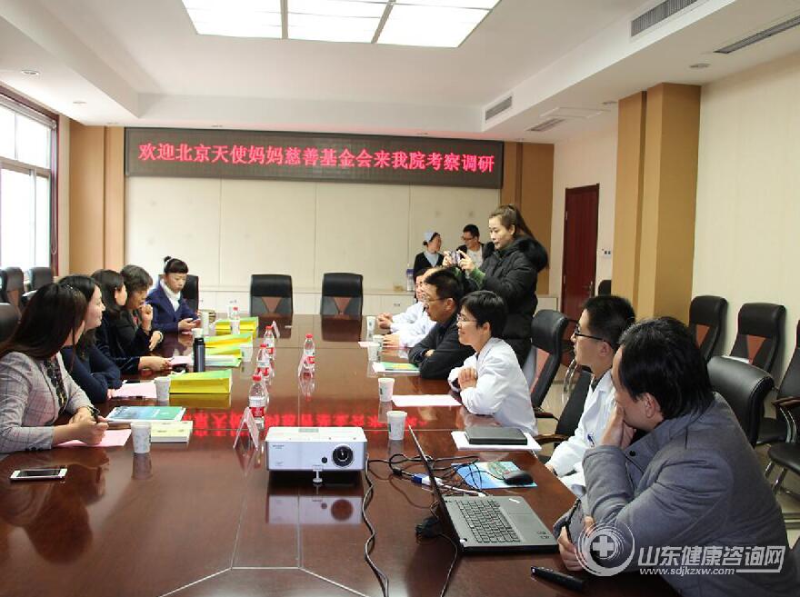 为了推动天使妈妈大病儿童救助项目在山东顺利开展,配合国家完成健康精准扶贫任务,3月20日,原山东省卫生厅副厅长巡视员、山东天使健康救助联盟主席刘玉芹、北京天使妈妈慈善基金会创始人邱莉莉、山东天使健康救助联盟秘书长,山东省扶贫开发基金会副秘书长,山东广播电视台《公益山东》栏目副制片人 ,山东健康咨询网总监晁玉萍、天使妈妈慈善基金会副秘书长张倩和“新肝宝贝”项目负责人张聪一行来到山东省千佛山医院考察调研肝移植救治项目,山东省千佛山医院副院长任勇、肝胆外科主任藤木俭、副主任李自强及相关临床科室专家参会,三方就医院公益项目相关事宜进行深入会谈并达成合作意向。