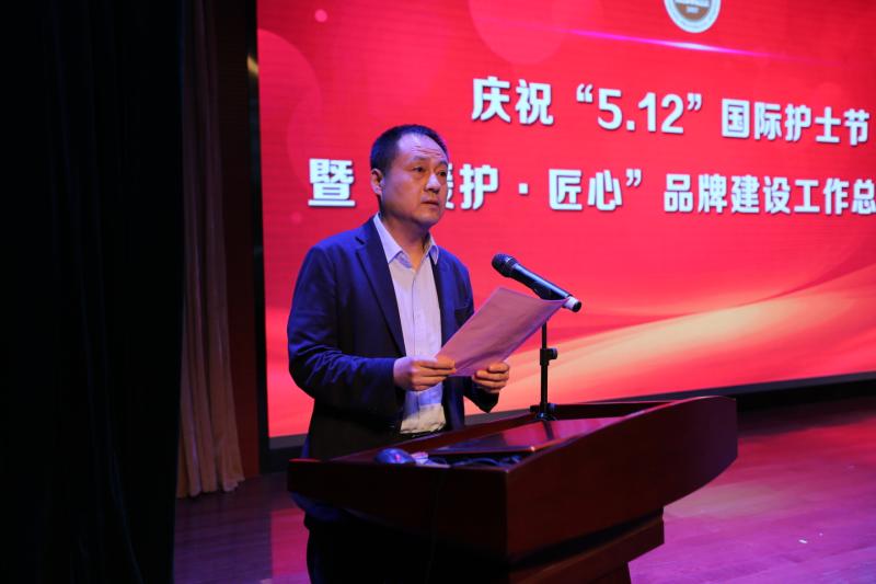 最后,院长秦成勇进行总结讲话,他充分肯定了一年来护理工作取得的成绩,代表医院全体职工对广大护理人员为医院发展、为患者健康而付出的辛苦努力,表示真挚的感谢。他强调,作为一名省医人,要始终怀着爱院如家的情怀,用技术、更用真情照护患者,让患者得到最好的医疗与护理。秦院长满怀深情的分享了两个来自护理一线的感人事例:心外监护室呼吸治疗师刘静在微信发布了一条对科室、对医院真情 “表白”的文章,通过她个人的成长经历,展示了作为一名省医普通护士在付出中获得的幸福感。另外他分享了在临床走访时,老旧的血管外科病房经过护理人员的精心设计与改造,焕发了崭新的面貌,展现了护理人员对医院如家一般的热爱。最后秦院长向与会的职能部门及广大护士代表提出三点希望:一是希望大家关爱好占全院职工近50%的护理队伍,只有护士满意,护理工作开展好,医疗质量才能进一步提升;二是在全国、全省进一步改善医疗服务行动中,在山东省扎实开展“双创双提双满意”三年行动计划中,护理人员需持续保持奋勇争先的士气,将“暖护•匠心”护理品牌建设成医院,甚至全国知名的大品牌;三是希望广大护理人员持续保持爱岗敬业、爱院如家的热情,更多的像刘静一样的护理人员团结奋进,为把省医建设成美誉幸福的国家级名院而贡献自己的力量。