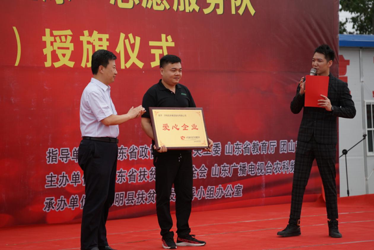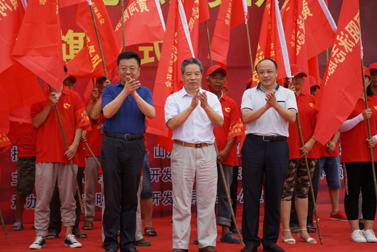6月22日,由山东省扶贫开发基金会、山东广播电视台农科频道主办,东明县扶贫办承办的“黄河阻泳”志愿服务队(东明)授旗仪式,在东明县菜园集镇黄河滩区举行。山东省关工委副主任宋继峰,省政协原副秘书长、山东省儒商研究会常务副会长兼秘书长袁庆宏,山东省政协办公厅副主任、联合日报社社长朱兴刚,团省委副书记李子元,山东省扶贫开发基金会副理事长石长河,省政协办公厅宣传处处长李美华,省教育厅学校安全管理处副处长苏斌,省扶贫开发基金会秘书长王景辉,山东省广播电视台农科频道“一切为了群众栏目”制片人王静,省政协“民生连线”群众代表、黄河阻泳发起人王和新,爱心企业代表济南圣泉集团帮帮忙公司副总经理崔建伟等出席了活动。