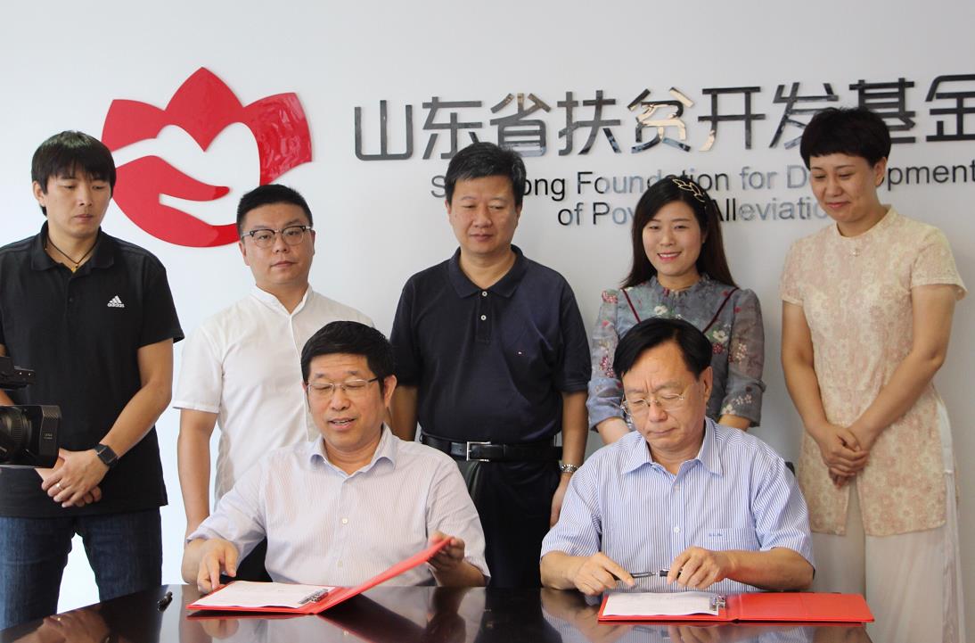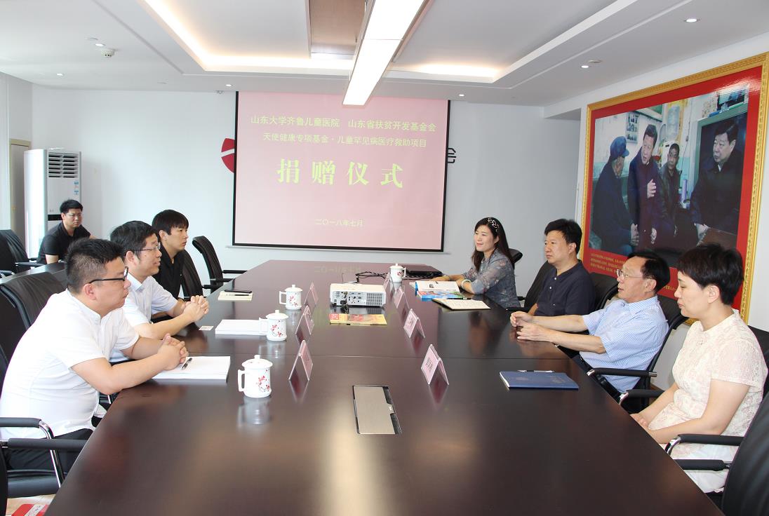 山东省扶贫开发基金会理事长于常青与山东大学齐鲁儿童医院院长张运奎双方签订捐赠协议,由山东大学齐鲁儿童医院向山东省扶贫开发基金会·天使健康专项基金儿童罕见病医疗救助项目,捐资300万元善款,用于我省贫困家庭的儿童罕见病医疗救助,为罕见病的孩子们带来福音、给他们重生的希望。
