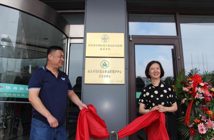 在随后的揭牌仪式上,山东中西医结合学会康复医学专业委员会主任委员李丽、青岛恒联健康产业有限公司董事长王世彬共同为“山东省中西医结合康复医疗联盟成员单位青岛市南恒海联医院”揭牌。