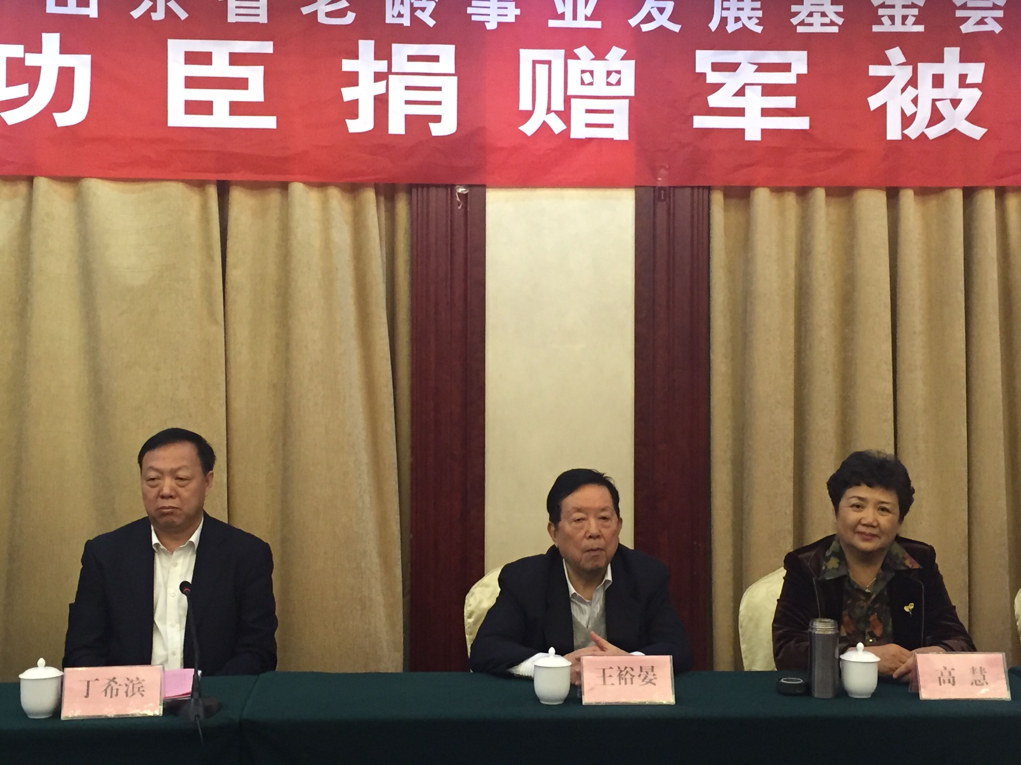 金秋十月爽,关爱沂蒙情。2015年10月23日,由山东省老龄委、山东省老龄事业发展基金会,山东省沂蒙商会共同发起的向沂蒙老功臣捐献被褥公益活动在临沭举行启动仪式,山东省原副省长 王裕晏,山东省老龄委主任 丁希滨,山东省老龄事业发展基金会 秘书长高慧,山东省沂蒙商会秘书长卢炳开 ,山东省泰山疗养院 院长张延安带领医护人员等领导出席参加了启动仪式。