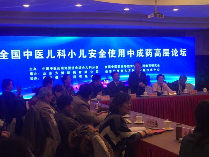 关注儿童安全用药、关爱儿童身心健康。2015年12月18-19日,中国中医药研究促进会综合儿科分会和全国中医药高等教育学会儿科教育研究会携手山东方健(广育堂)制药有限公司,山东广育堂古方创新工程技术中心,深圳健安医药有限公司召开的 “全国中医儿科小儿安全使用中成药高峰论坛”在孔孟之乡、东方圣城 济宁举行,中国中医药研究促进会综合儿科分会、全国中医药高等教育学会儿科教育研究会 会长 徐荣谦、副会长 北京首都医科大学附属北京儿童医院 主任医师 闫慧敏、秘书长 尹丹、副秘书长山西大同大学医学院 院长 杨硕平 、济宁市政协副主席 全国人大代表 陈颖、山东方健(广育堂)制药有限公司 总经理 杜新磊等领导出席了会议,还有来自全国儿科专业的50多名知名儿科专家、学者汇聚一堂,针对中医儿科中成药安全用药问题开展专题深入研讨。