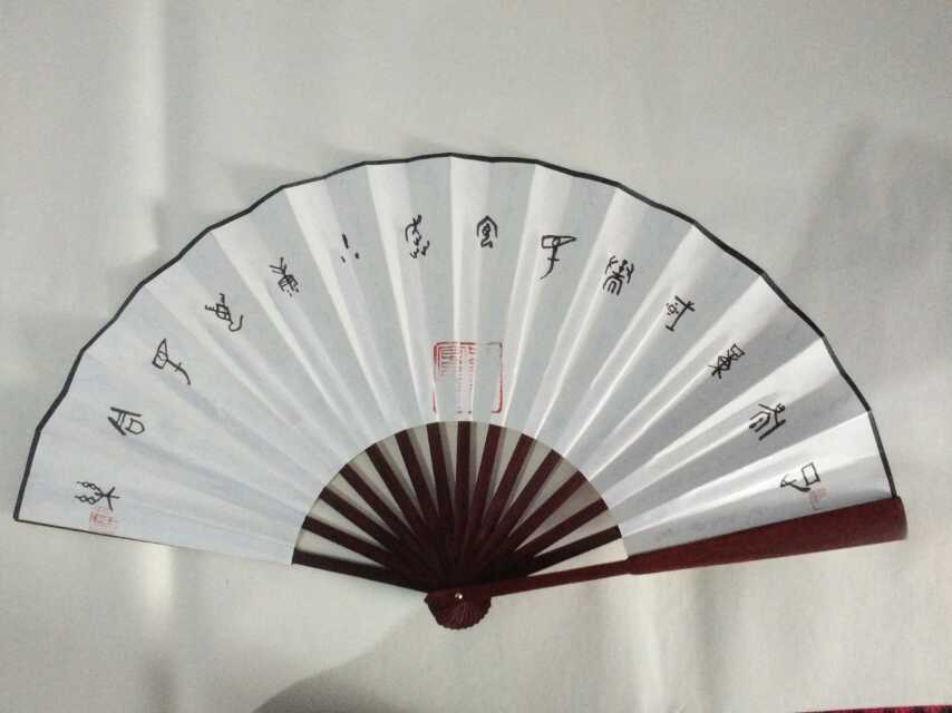 其二,指女书文字的相关作品。如文学作品《三朝书》、《哭嫁歌》、《自传》、《哀怨》、《书信》、《民歌》、《古警》等,这些作品一般以七言诗书写。如生活用品,写有女书文字的折扇、刻有女书文字的梳妆台、绣有女书文字的荷包或帽子、织有女书文字的腰带等。