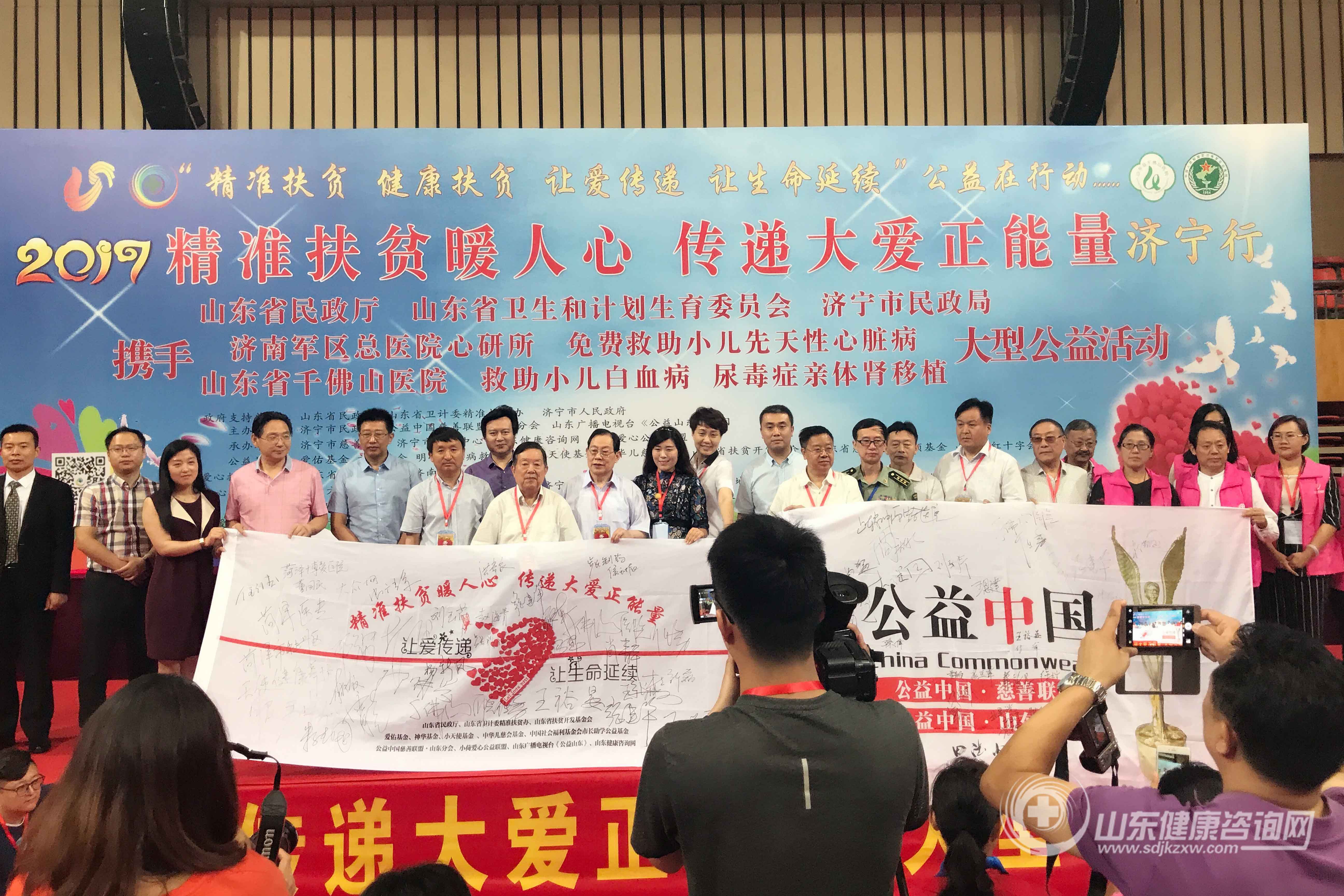 本次活动由山东省民政厅、山东省卫计委精准扶贫办、济宁市政府、济宁市民政局、公益中国慈善联盟·山东分会、山东广播电视台《公益山东》、山东健康咨询网携手山东省千佛山医院、济南军区总医院心研所、山东省扶贫开发基金会、山东省慈善总会、山东省红十字会、爱佑基金、神华基金、小天使基金、中华儿慈会基金联合举办。