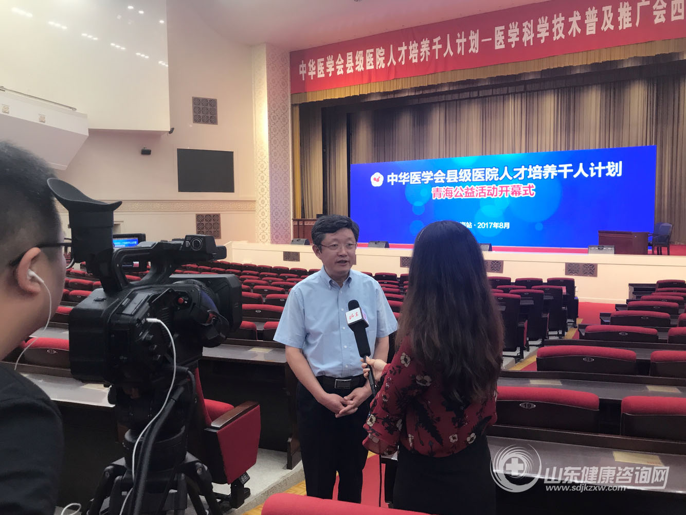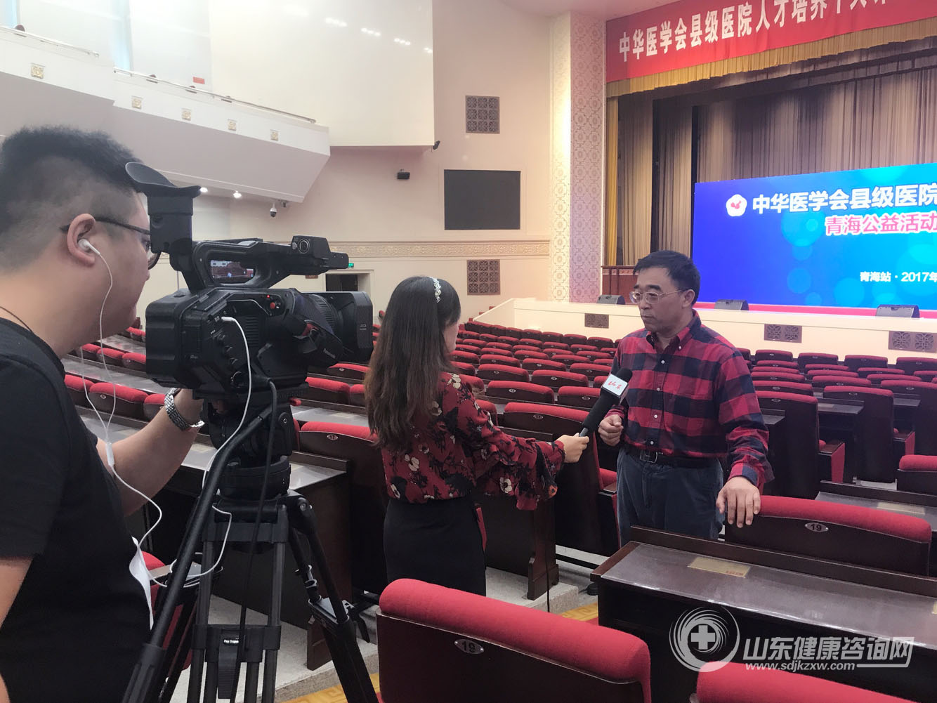 ▲青海省卫计委副主任 青海省医学会会长王虎 接受记者采访