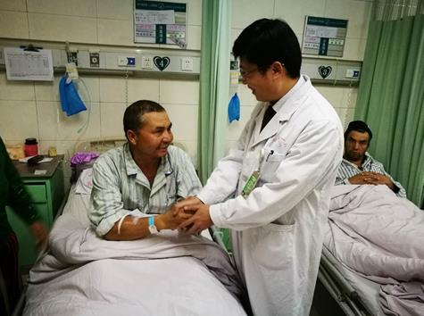 作为医生,我们接触最多的就是患者,在帮助患者解除病痛的同时,传递党和政府的关爱是我们一直努力的方向。记得刚来喀什不久的一天晚上,突然接到喀什地区一院心血管外科医生打来的求助电话,说他们接诊了一位急症病人,情况危急,且他们没有类似病例的处理经验。从发来的CTA图像,我判断这是一例复杂型Stanford B型主动脉夹层,这种疾病十分凶险,需要紧急手术。来不及思考,我一边奔赴医院,一边通过电话让主管医生进行各种术前准备,与死神抢时间。手术成功了,患者获救了!当主管医生告诉患者的妻子,是山东援疆专家救活了她丈夫,她紧紧握着我的手不撒开,我可以看到她眼中闪烁的泪花。在这个距离乌鲁木齐还有1500公里的祖国西部边陲,那个时刻,我们山东援疆人就是患者存活下来的唯一希望!“山东热合麦提”就是对我们援疆人最大的鼓励。