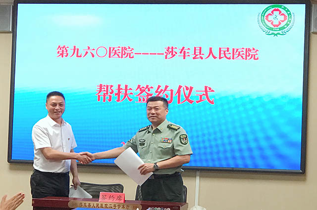 当日上午,新疆于田县人民医院的会议室内掌声雷动、气氛热烈,联勤保障部队第九六〇医院与该院签定对口支援帮带协议。